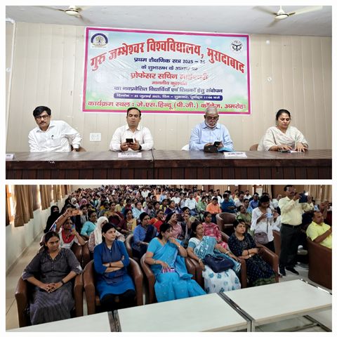 25 जुलाई 2025 को गुरु जंभेश्वर विश्वविद्यालय, मुरादाबाद के प्रथम शैक्षणिक सत्र 2025-26 के शुभारंभ के अवसर पर कुलपति प्रोफेसर सचिन माहेश्वरी ने विश्वविद्यालय के नवप्रवेशित विद्यार्थियों एवं शिक्षकों को संबोधित करते हुए कहा कि विद्यार्थी विश्वविद्यालय की आत्मा होते हैं, आज इन्हें पाकर हम अपार हर्षित हैं।