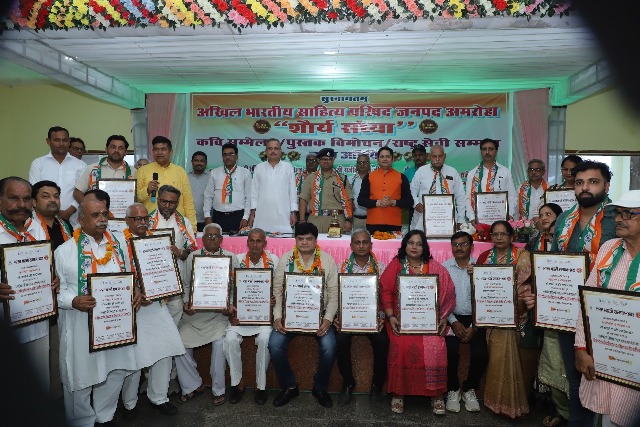अमरोहा जनपद के मंडी धनौरा के सेलिब्रेशन ग्रैंड में अखिल भारतीय साहित्य परिषद के तत्वावधान में आयोजित शौर्य संध्या में अखिल भारतीय कवि सम्मेलन पुस्तक विमोचन समारोह व राष्ट्र सेवी अलंकरण कार्यक्रम का शुभारम्भ करते हुए पुलिस अधीक्षक अमित कुमार आनंद ने देश के नाम अनाम शहीदों व सेनानियों को श्रद्धांजलि अर्पित करते हुए कहा कि भारत की भव्यता शहीदों की गौरव गाथा में निहित है कार्यक्रम में पहुँचे रामपुर रजा लाइब्रेरी के निदेशक डा पुष्कर मिश्रा ने कहा कि साहित्य की सार्थकता देश के महापुरुषों की गौरवशाली विरासत व उनकी गाथाओं में है।