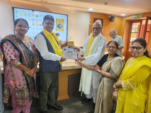 उसी क्रम में श्योनाथ सिंह प्रजापति(राष्ट्रीय पुरस्कार प्राप्त से0नि0शि0 एवं साहित्यकार/कवि,को भी किरण हजारिका शशि त्यागी आदि ने अंगवस्त्र, प्रशस्ति पत्र व नागरी संगम पुस्तक भेंट करते हुए सम्मानित किया।