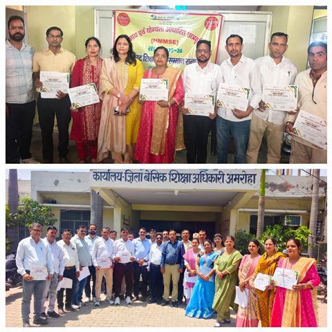जिला बेसिक शिक्षा अधिकारी कार्यालय सभागार में बेसिक शिक्षा अधिकारी जनपद अमरोहा डॉ. मोनिका ने राष्ट्रीय आय एवं योग्यता आधारित छात्रवृत्ति परीक्षा की तैयारी कराने वाले जिले भर के 41 नोडल शिक्षकों को प्रशस्ति पत्र देकर सम्मानित किया।